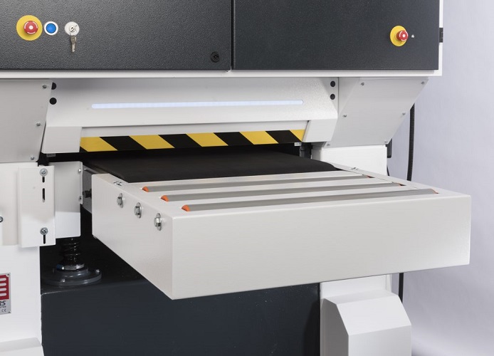 42 系列去毛刺機為全天候工作的設計理念,在研磨接觸輥(直徑 180 mm、280 mm 和 450 mm)上配備了升降裝置。這就確保了可方便靈活的切換用途。