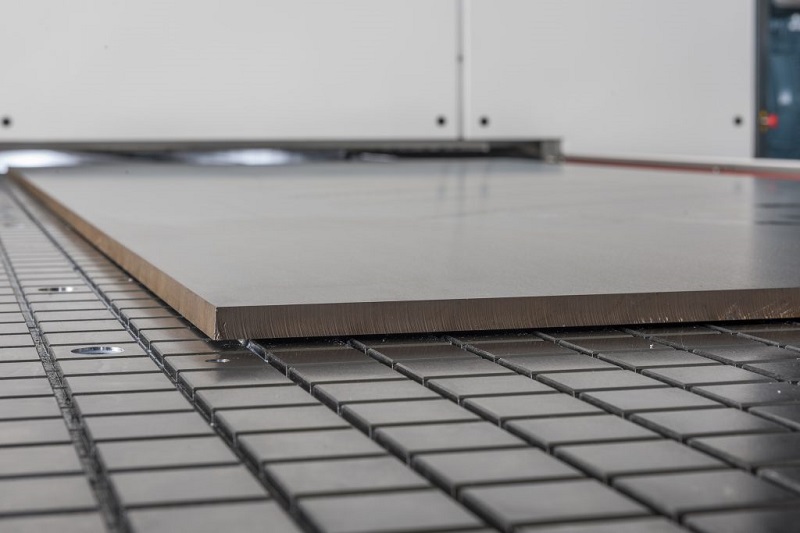 精密研磨又稱定厚磨削,即使用寬研磨帶磨削工件以達(dá)到需要的厚度。此類加工通常需要慢速進(jìn)料或大功率往復(fù)式工作臺(tái),硬砂輥、高研磨帶運(yùn)轉(zhuǎn)速度及粗粒度研磨帶。Timesavers 81系列設(shè)備加工精度可達(dá)0.02 mm。